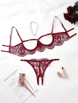 Lilosy Sexy Satin Mesh Floral Sheer Embroidered Underwire Lingerie Set 2 Piece Women$15Whittier, CA