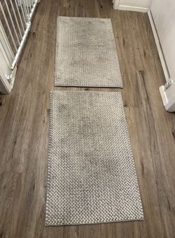Set of two Grey & White Floor Rugs w/Grip Good Condition 33" L x 21" W Thin & Solid!$20San Diego, CA
