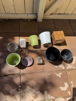 Lot of 9 Metal/Glass/Plastic Plant Pots. Assorted Sizes &Colors + 1 base! Great Condition$20San Diego, CA