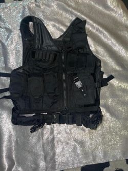 black tactical vest. It is designed for tactical and outdoor use, often seen in activities like airsoft, paintball, hunting, or training. These vests$130Queens, NY