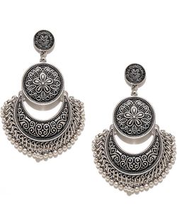Rhodium-Plated American Diamond Studded Oval & Leaf Shaped Drop Earrings For Girls and Women$35Newark, CA