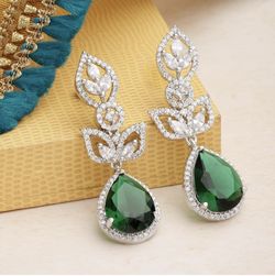 Rhodium-Plated American Diamond Studded Teardrop & Leaf Shaped Handcrafted Drop Earrings For Girls and Women$25Newark, CA