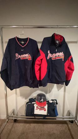 Atlanta Braves MLB 4-Pc Lot Nike Pullover Majestic Jacket Signed Hat Duffel Bag$500Alta Loma, CA