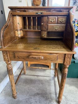 Vintage Solid Oak Roll Top Desk w/ Key – Carved Details & Interior Storage$150Deerfield, IL