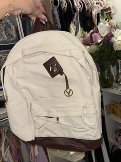 White backpack with leather detail$10Highland, CA