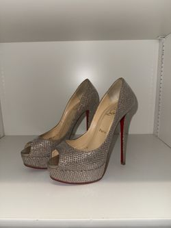 Christian Louboutin - Fetish Peep Toe Gold Glitter Pumps$400Los Angeles, CA