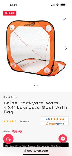 Brine Backyard Wars, 4 X 4 Lacrosse Goal With Bag$45Longwood, FL