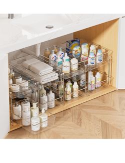 Vtopmart 4 Pack Bathroom Organizer, 2 Tier Clear Under Sink Organizers Vanity Countertop Storage Con$30Glendora, CA
