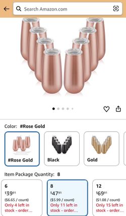 8 Pack Stemless Insulated Flute Tumblers, 6 Oz Unbreakable Rose Gold Champagne Glasses for Friends, Birthday, Christmas, Wedding$30Glendora, CA