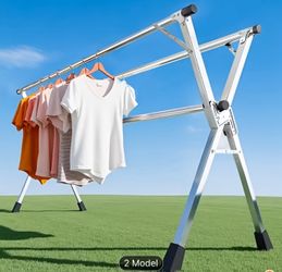 Foldable Metal Clothes Drying Rack, Adjustable Three Rod, with Space-Saving Storage, 51-79in$25Covina, CA