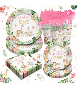 Wild One Birthday Party Supplies for Girls Tableware Set - Safari Birthday Decorations Include Plates, Napkins, Cups, Cutlery, Animal Jungle Theme Wil$15Irwindale, CA