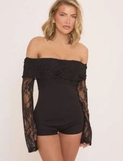 Juniors/Women’s Cherry Mellow Brand, Black Lace Off Shoulder One Piece Romper/Jumpsuit-Size Small$11Harrisonburg, VA