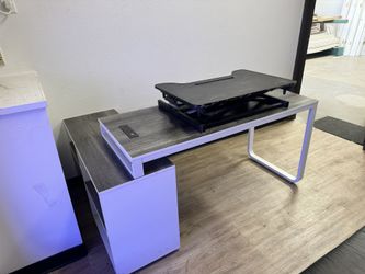 L Shaped Desk with File Cabinet & Power Outlet, Including Converter, 55 Inch Wide Computer Desks with LED Strip, with Drawers and Storage $150San Jacinto, CA