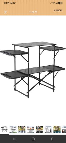 Slim-Fold Camping Kitchen Table, Metal Folding Portable Outdoor Cook Station with 4 Side Tables, 2 Storage Shelves & Carrying Bag, Heat Resistant Quic$60Seffner, FL