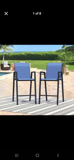 Outdoor Bar Stools Set of 2, 44'' Patio Bar Chairs with Textile High Back, Bar Height Chairs with Straight Armrest and Footrest, Blue$75Seffner, FL