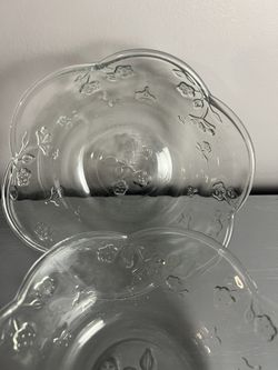 Vintage Clear Glass Bowls glass w/ embossed PETUNIA flowers Scalloped Edges Salad bowl Snack Bowl$10Myrtle Beach, SC