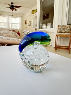 Art Glass Dolphin Figurine on Bubble Base – Hand Blown Style Paperweight – Blue Green $25Stuart, FL