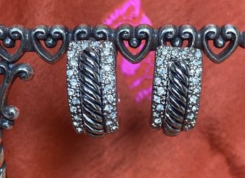 Pierced Silver Tone Twisted Rope & Rhinestone Earrings. $15Burbank, CA