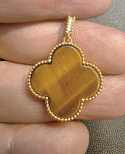 💛18k Gold And Tiger Eye Clover Pendant $360Menifee, CA