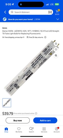 Damar 34316 - LED18T8 / 841 / 4FT / HYBRID / SS 4 Foot LED Straight T8 Tube Light Bulb for Replacing Fluorescents$15City Of Industry, CA