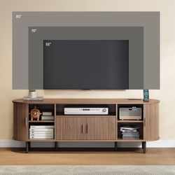 69" Fluted TV Stand with Power Outlet for TVs up to 80 Inch, Entertainment Center with Storage, Sliding Doors, Adjustable Shelves, Mid Cent$110Rancho Cucamonga, CA