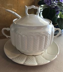Vintage White Soup Tureen California Pottery L200 USA 12” Pineapple Design Motif$30South Holland, IL