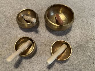 Set of 4 Bronze Singing Bowls with Mallets 3” C, 3” F, 4” G, 5.5” B$60Henderson, NV