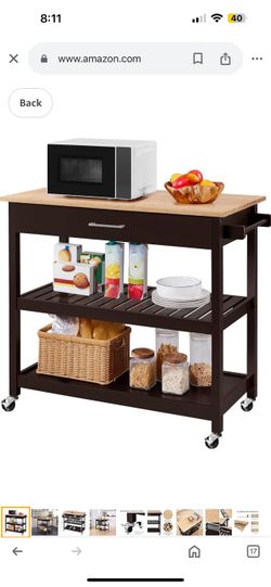 Kitchen Island on Wheels with Bamboo Tabletop, 3-Tier Rolling Kitchen Cart Microwave Oven Cart Serving Trolley with Drawer and Wine Storage Shelf, 20"$95Stratford, CT