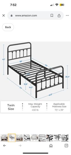 Twin size Classic Metal Platform Bed Frame Mattress Foundation with Victorian Style Iron-Art Headboard/Footboard/Under Bed Storage/No Box Spring Neede$50Stratford, CT