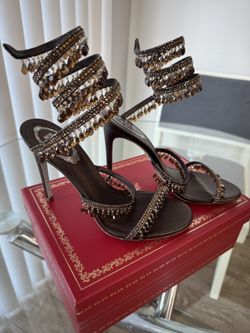 René Caovilla Satin Chandelier Heeled Sandals 105 - Size 39 - Brown - Elegant Crystal Embellished$1,499Los Angeles, CA