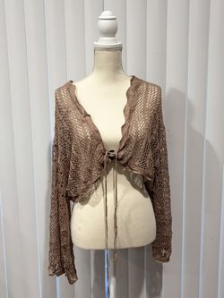 PLUS SIZE Brown Open Knot Lace Up Front Cardigan$5Fontana, CA