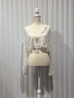 PLUS SIZE White Fishnet Lace Up Cardigan$5Fontana, CA