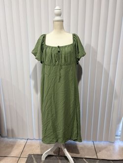 PLUS SIZE Green Dress Puff Sleeve Knot Front Split Thigh Dress$12Fontana, CA
