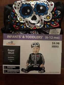 Sugar Skull Baby Halloween Costume Jumpsuit w Cap Size 6-12 mo NWT 2-piece$5Graham, WA