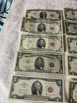 Billetes Serie De Plata De $1,$2 Y $5 Sello Rojo Y Sello Azul$500Silver Spring, MD