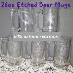 Gift - Team Beer Mugs - Chiefs 49ers Raiders Eagles Cardinals Steelers Patriots Buccaneers Broncos Packers Seahawk Husband Dad Tata Abuela $15Glendale, AZ