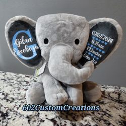 Personalized Gift Custom Birth Stat Baptism Christening Newborn Keepsake Momento Plush Plushie Elephant Monkey Unicorn $28Glendale, AZ