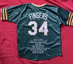 Oakland A's Rollie Fingers Autographed Pro Style Green Stat Jersey BAS COA$80San Diego, CA