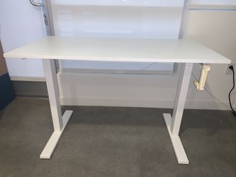 Manually adjustable height white desk with a hand crank(l 47.25”x w 23.625” x h 29.5” to 45.25”)$80Santa Ana, CA