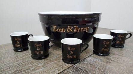 Vintage HALL Tom & Jerry Punch Bowl Black/Gold Set W 5 Mugs$65Phoenix, AZ
