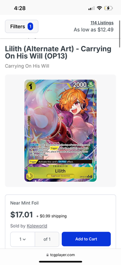 OP Lilith full art card$20Everett, MA