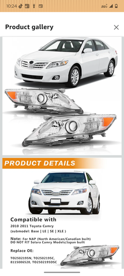 Headlights Toyota Camry 2010 /2011$120Phoenix, AZ