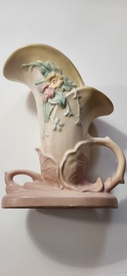VINTAGE HULL ART POTTERY VASE 10-8 1 /2 W/ HANDLES MATTE PINK /Yellow$40Tumwater, WA