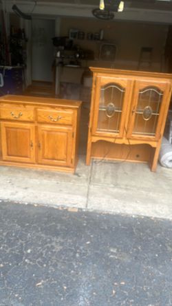 China cabinet with electrical light hooked up top and bottom. Perfect condition with six piece. Matching table, all wood. Great condition. . St strong$50Hilliard, OH