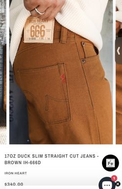Brand New Iron Heart 17OZ DUCK SLIM STRAIGHT CUT JEANS - BROWN IH-666D/Size 34$150Rialto, CA