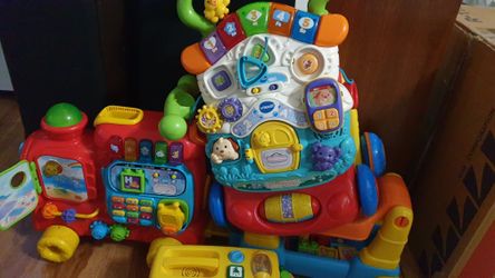 V tech Train with some blocks, V tech Stroll and Discover, Leap Frog phonics bus. $25Anaheim, CA