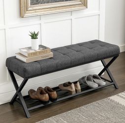 LUE BONA 44.5” End of Bed Bench with Shelf, Linen Tufted Upholstered Storage Shoe Bench, Modern Bedroom Bench with Metal Legs for Living Room, Entrywa$240Murrieta, CA