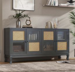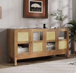KEIKI 60" 4-Door Sideboard Cabinet with Large Storage,Artificial Rattan and Transparent Glass for Entryway Kitchen Living Room$115Murrieta, CA