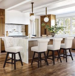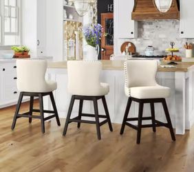 Hampton 26 in. Off-White Solid Wood Frame Counter Stool with Back Linen Fabric Upholstered Swivel Bar Stool Set of 3$160Murrieta, CA