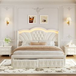 Modern King Bed Frame with 2 Drawers, LED Lights Platform Bed Frame, Sturdy Beds Frame with Upholstered Button Tufted Headboard, Velvet White$175Murrieta, CA